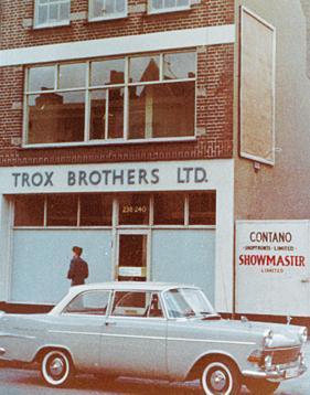 Лондон 1962: Первый корпоративный автомобиль, Opel Rekord, перед офисом компании TROX Brothers ("Братья ТРОКС")